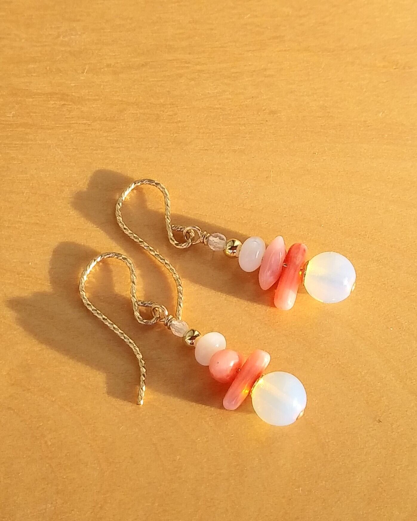 K14 GF 光を浴びるとオーロラ色に輝くシンセティックオパール ピアス