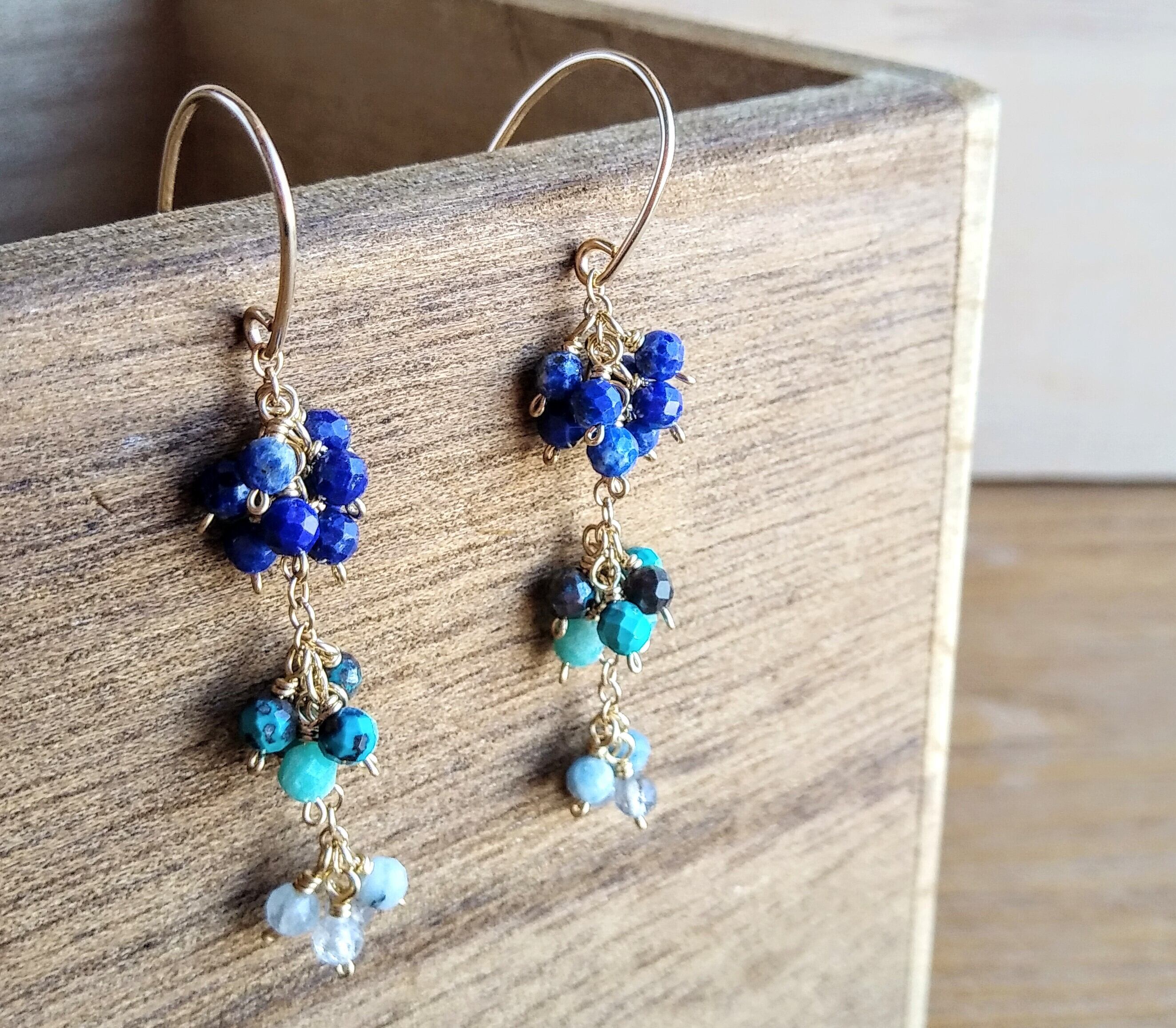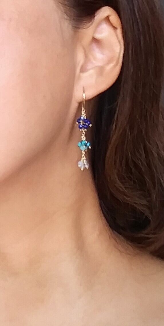 晴れた海色の天然石のピアスと共に