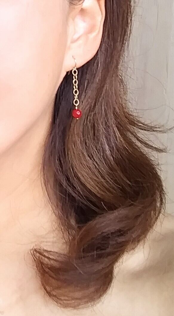 さりげないサイズながら見る人が少し気になる様な赤色ピアスです☆
