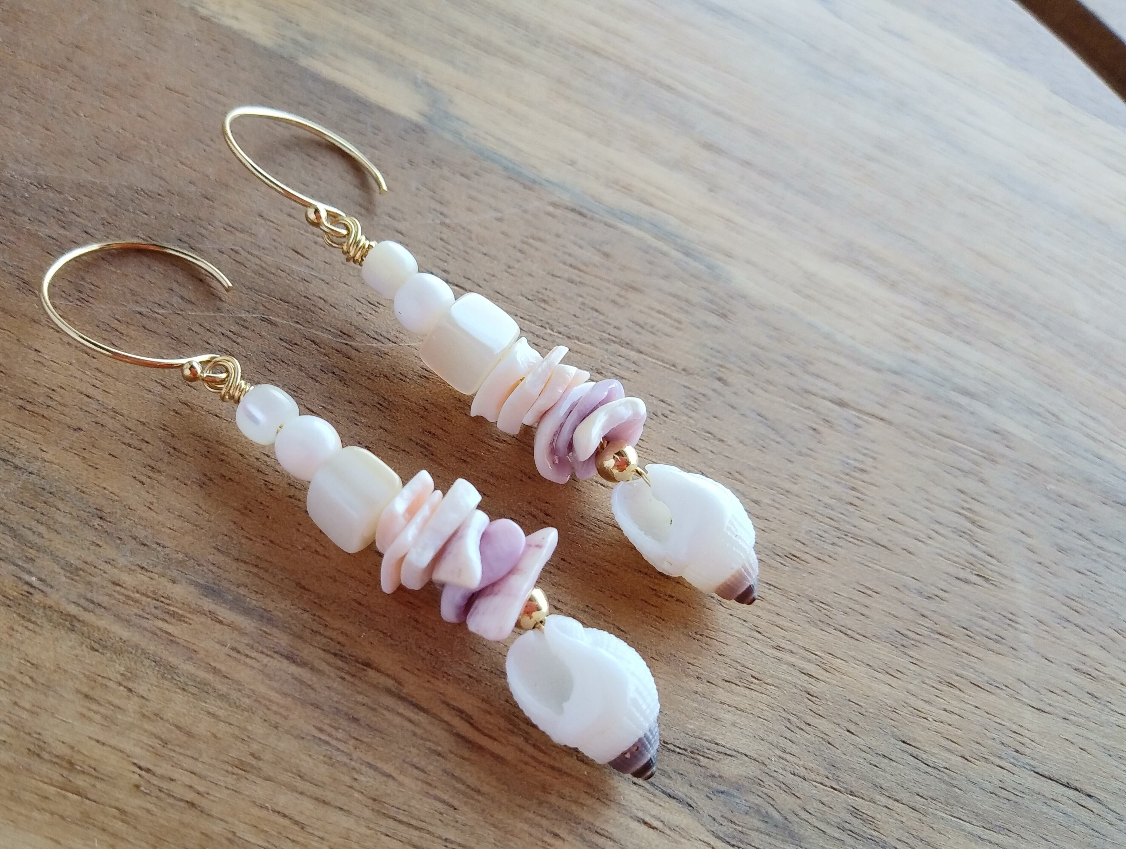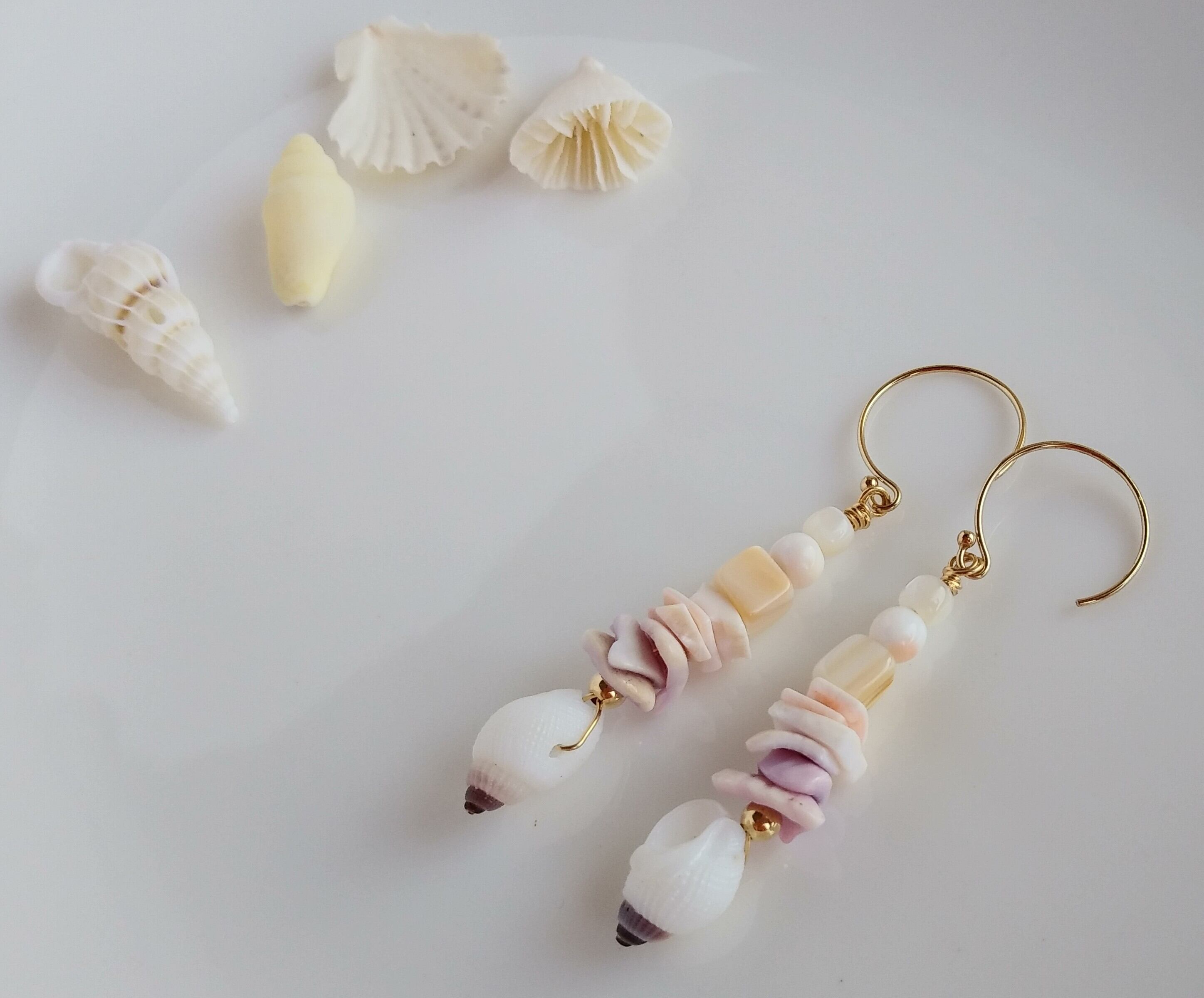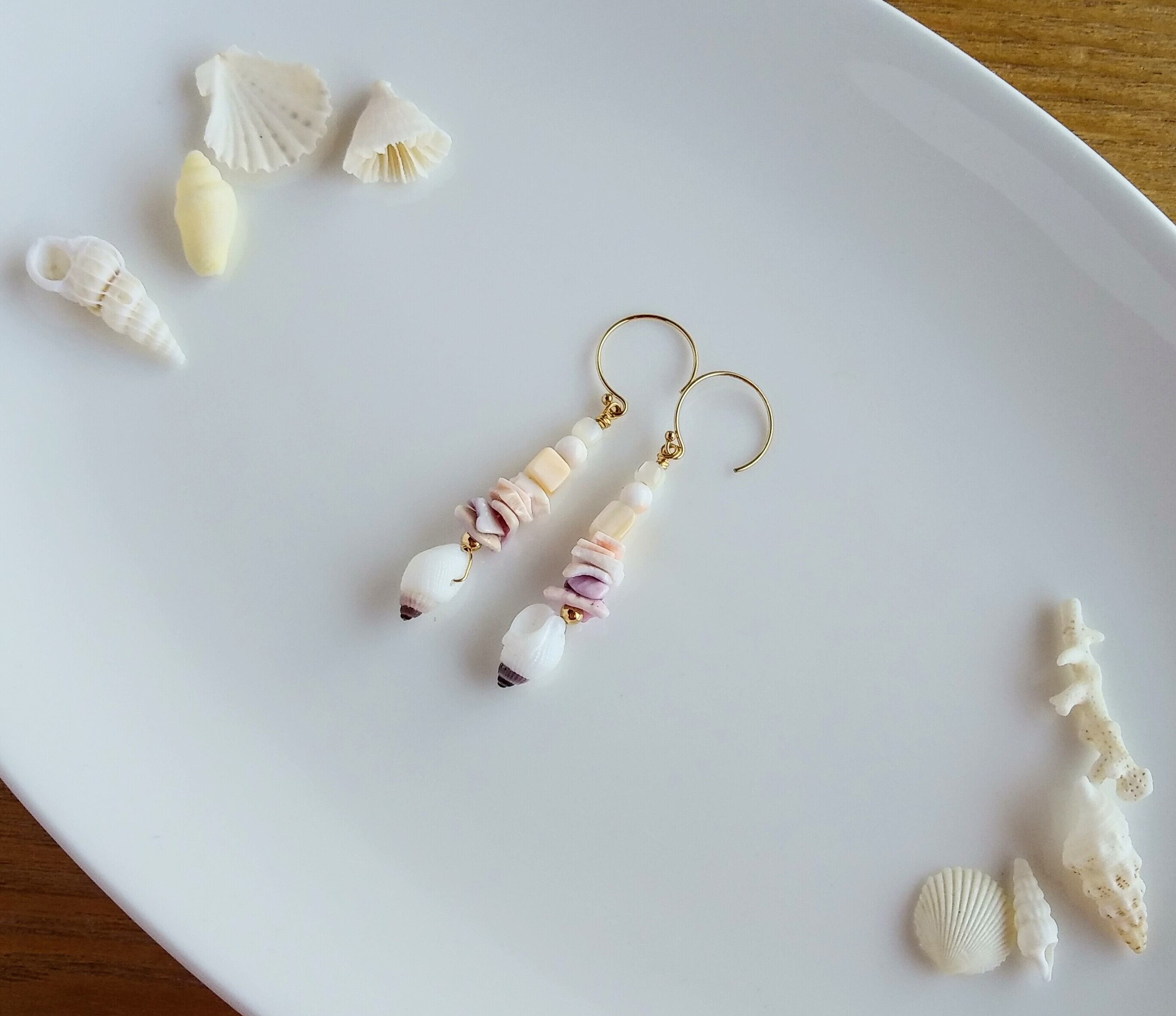 天然の色々な貝を組み合わせたピアス。